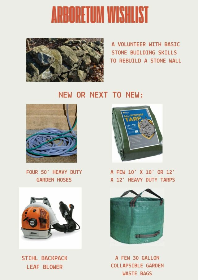 The Arboretum occasionally needs equipment or supplies, or even volunteers with specialized skills.