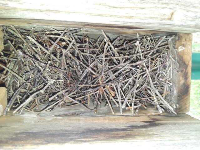 Northern House Wren (NHWR) – In 2024, ornithologists split the "House Wren" into several species. The house wren we commonly see in this area is now called the Northern House Wren. None of the other house wren species live nearby. These small, plain looking brown birds are known for their energetic behavior and frequent bubbly songs. Stand too close to their nest and you’ll learn that this small bird can make a lot of sound. They prefer forests, thickets, edges, and areas with scattered trees. NHWR eat insects and spiders. They commonly nest in our boxes, favoring ones that are close to trees and brushy areas. Northern House Wrens will sometimes peacefully coexist with another species nesting nearby. However, they can be fierce competitors for nest holes and may dismantle nests and attack the eggs/young/adults of other birds. They may also monopolize a pair of boxes by nesting in one and filling the other with small sticks. These unusable nests are called “dummy nests”. It is permissible to remove a dummy nest to make it available to other birds but first you must carefully verify on multiple visits that there is no nest cup behind all those sticks. For these reasons, NHWR can irritate people who put out nest boxes in the hopes of attracting bluebirds or other cavity nesters. NHWR migrate south for the winter. You can learn much more about Northern House Wrens by visiting https://www.allaboutbirds.org/guide/House_Wren.