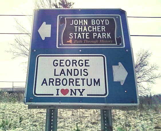 Many people discover the Arboretum when they notice the signs for Landis on Route 20 in Esperance. Recently our reach has been extended to Route 88. Whether you are driving east or west, just before Duanesburg the Attractions signage now includes a bright white emblem stating "George Landis Arboretum" with the "I (Heart) NY" logo.