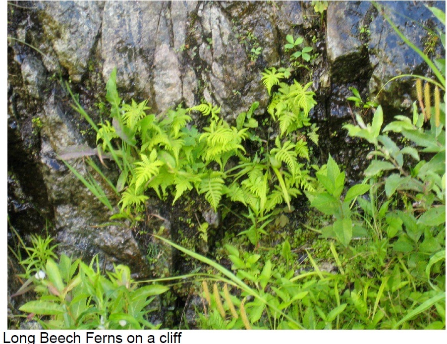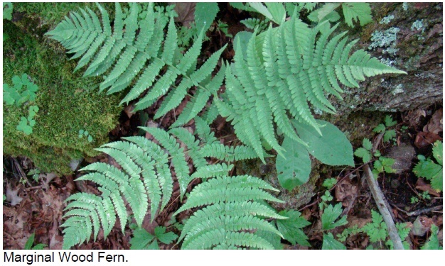 Soon after the spur trail was cut across the trail’s wetland area in 2004, Nan supplied some wetland ferns (ostrich, cinnamon, and royal) from her own property. Last year, Nan collaborated with Ed in publishing Ferns of the Capital Region: A Guide to Species Identification, now available at the Arboretum for purchase in hardcopy or in a .pdf format free with Arboretum membership. While he and Nan were working on the booklet, they discovered a nucleus of fern colonies already established on the hillside and decided that they would plant and label every species common locally. Ed defines “common locally” as those ferns he has been able to find growing naturally in at least two places open to the public within 30 miles of the Capital Region. Nan was able to find specimens of most of these on her family’s property. A few were purchased from nurseries, including a couple that are rarities in this area, including male fern (Dryopteris filix-mas) and Braun’s holly (Polystichum braunii) fern. Some species of wood ferns had already established themselves naturally on the hillside, including intermediate wood (evergreen) ferns and marginal ferns. There are now 30 species planted on this addition to the Native Plant Trail.