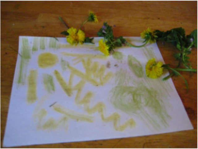 So, parents, grandparents, aunts and uncles: this summer, give it a try. On some rainy day or during a dull picnic, get a big sheet of paper. Grab some clover and dandelion leaves and paint that chlorophyll all over the place. Pick some dandelions and paint bold yellow suns. Experiment with some other colors, too—purple lilacs, red tulip petals, orange day lilies. There’s a whole Crayola box out there along the trails and in the gardens.