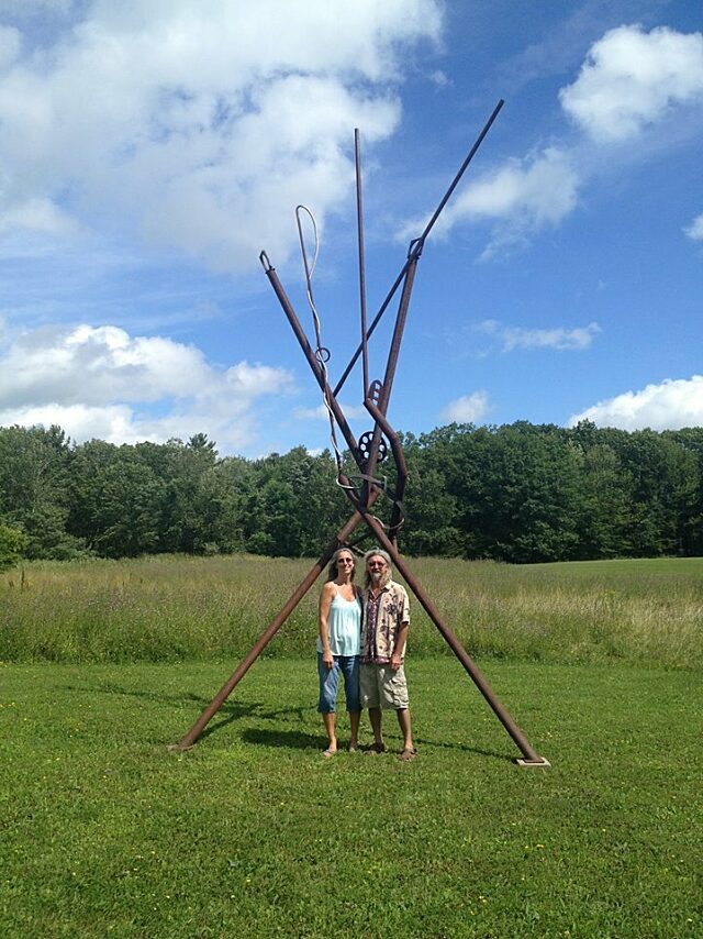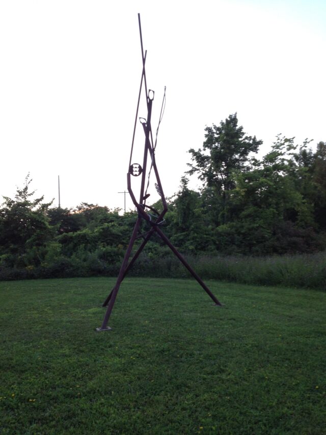 During the month of August, Sam installed an exhibit of his large-scale sculptures at the Landis Arboretum. We are very fortunate to have these never before exhibited works on our grounds for our visitors to enjoy. Both sculptures are part of Sam’s Rusty Metal Series.