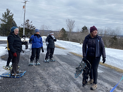 Landis volunteer Susan Strangia led the event—which had a dozen participants. She has been interested in the outdoors since youth and began volunteering at the Arboretum in May 2021. This was following her retirement from the New York State Office of Mental Health. She began snowshoeing about 15 years ago.