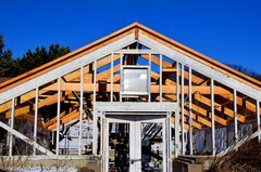 Jim Paley negotiated the purchase of durable larch beams, milled at a local Amish saw mill, as well as the polycarbonate panels that will be installed this spring. Additional stone will be poured to level the floor.
