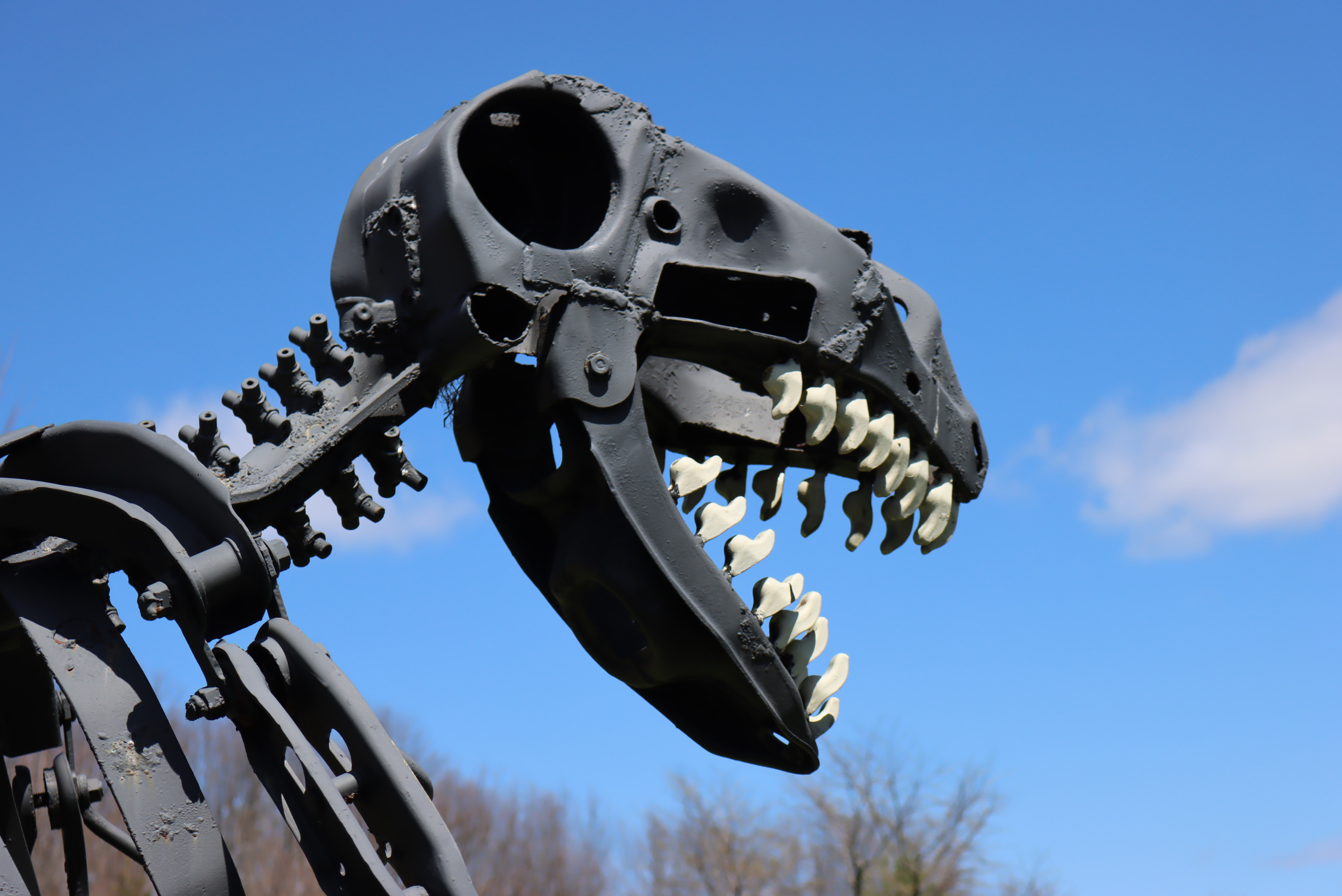 Recently, a fearsome dinosaur came to lurk beside the pond behind the barn. But the Landisauris is not the only sculpture on our grounds.