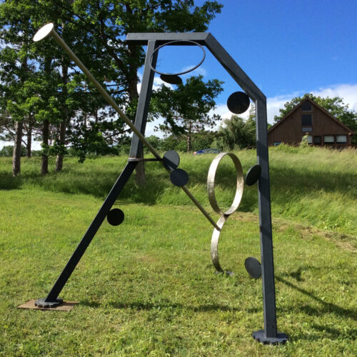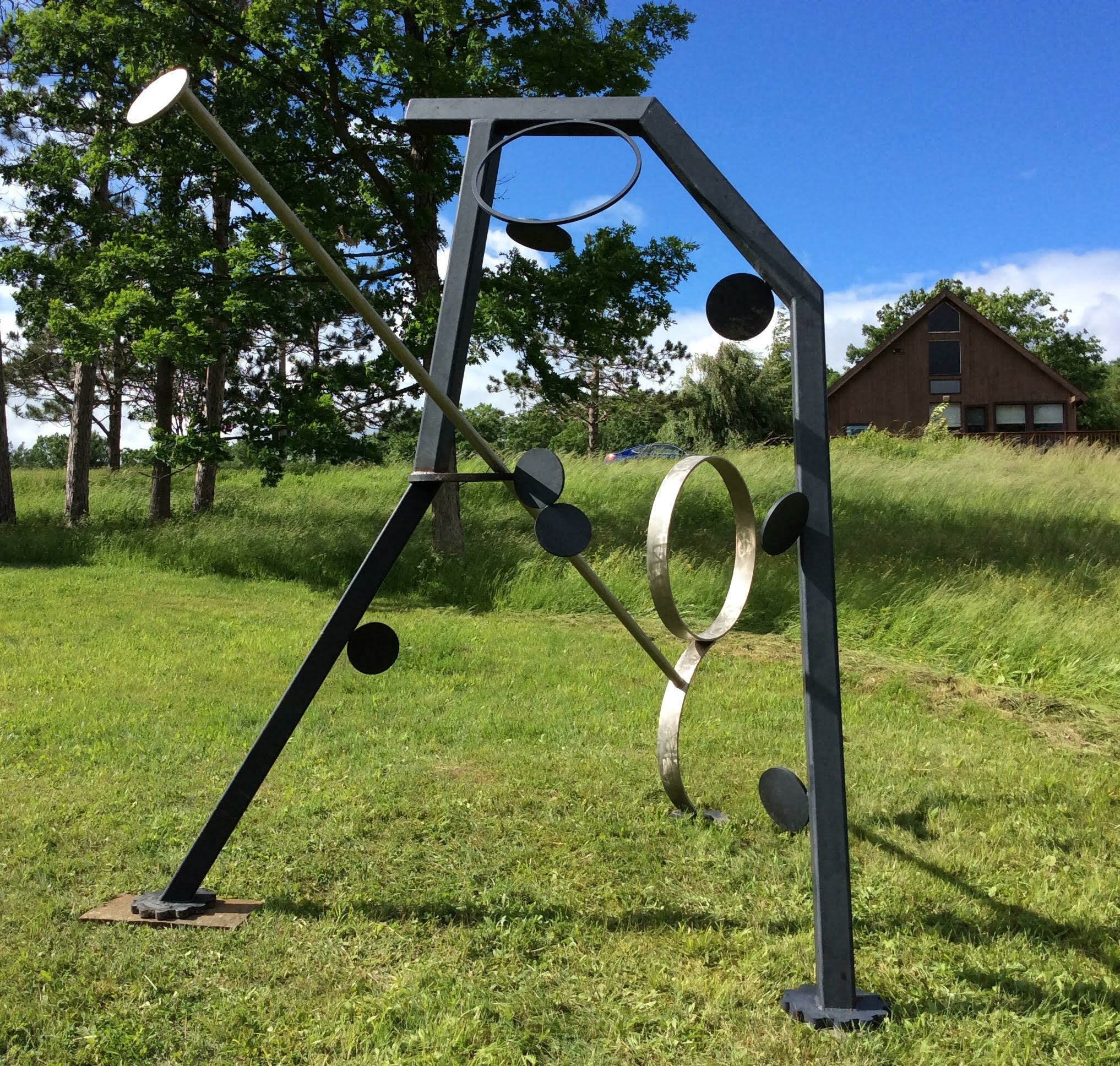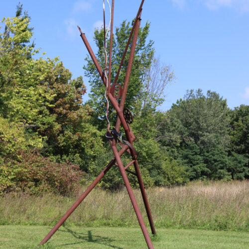His second sculpture, “August”, a 20’ animalistic piece from the same series, can be seen by the lower pond near the barn. Samuel’s third installation is “A Shattered Life” - a painted steel and stainless steel piece depicting the strength and fragility in all of us, is placed at the head of the new lilac trail.