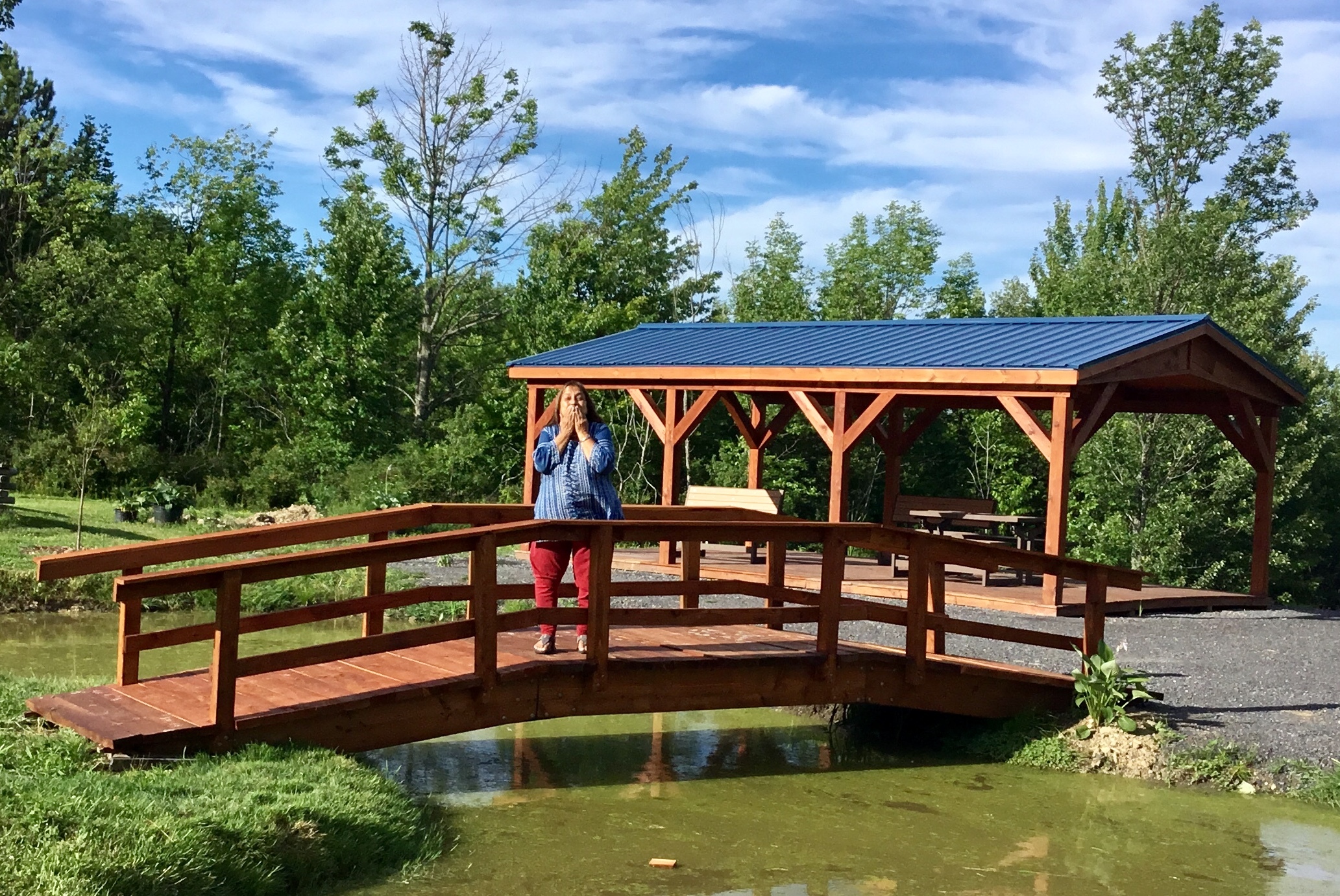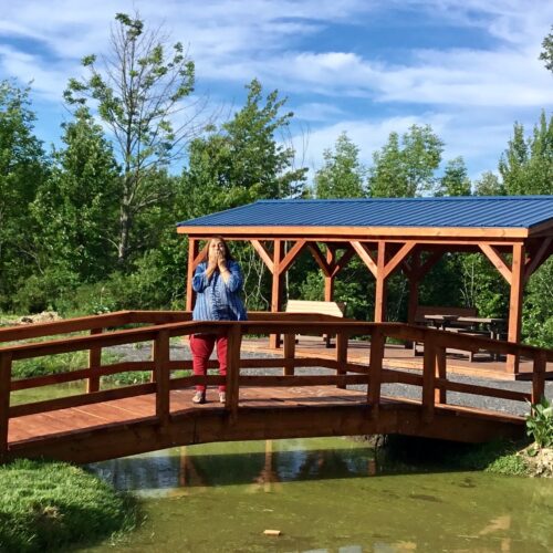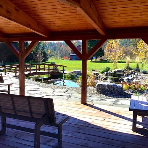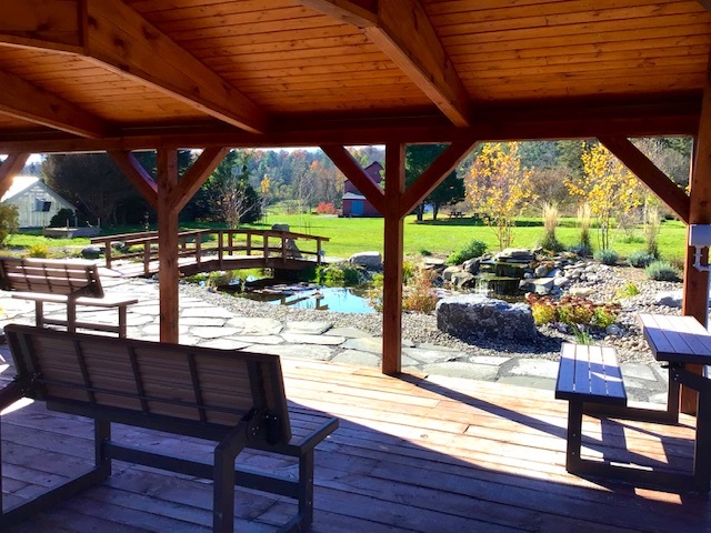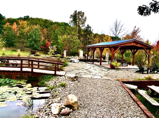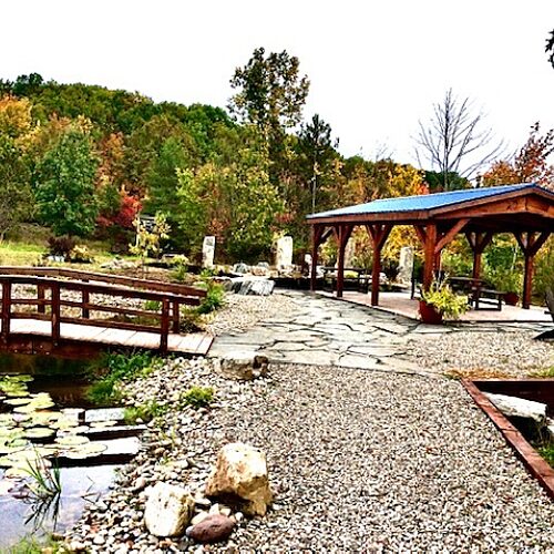 Visitors can enjoy the musical notes of the waterfall in the garden pond or sit at a picnic table in the covered Pavilion for lunch or just to relax and enjoy the view. The existing meditation labyrinth has been renewed, and in a few short years, the newly installed birch grove will be mature.
