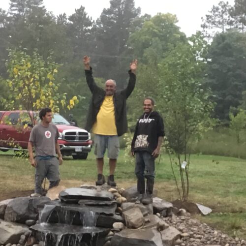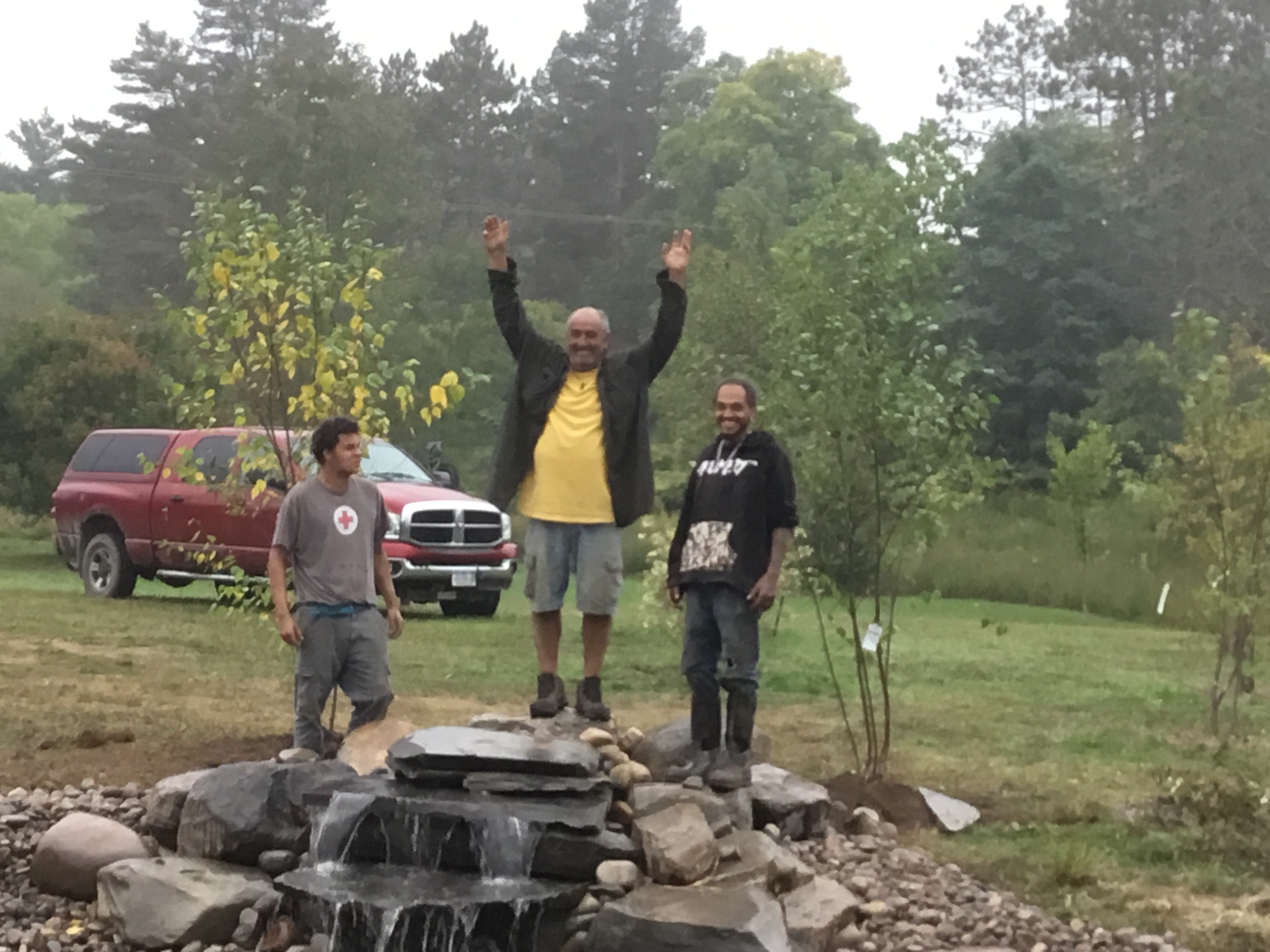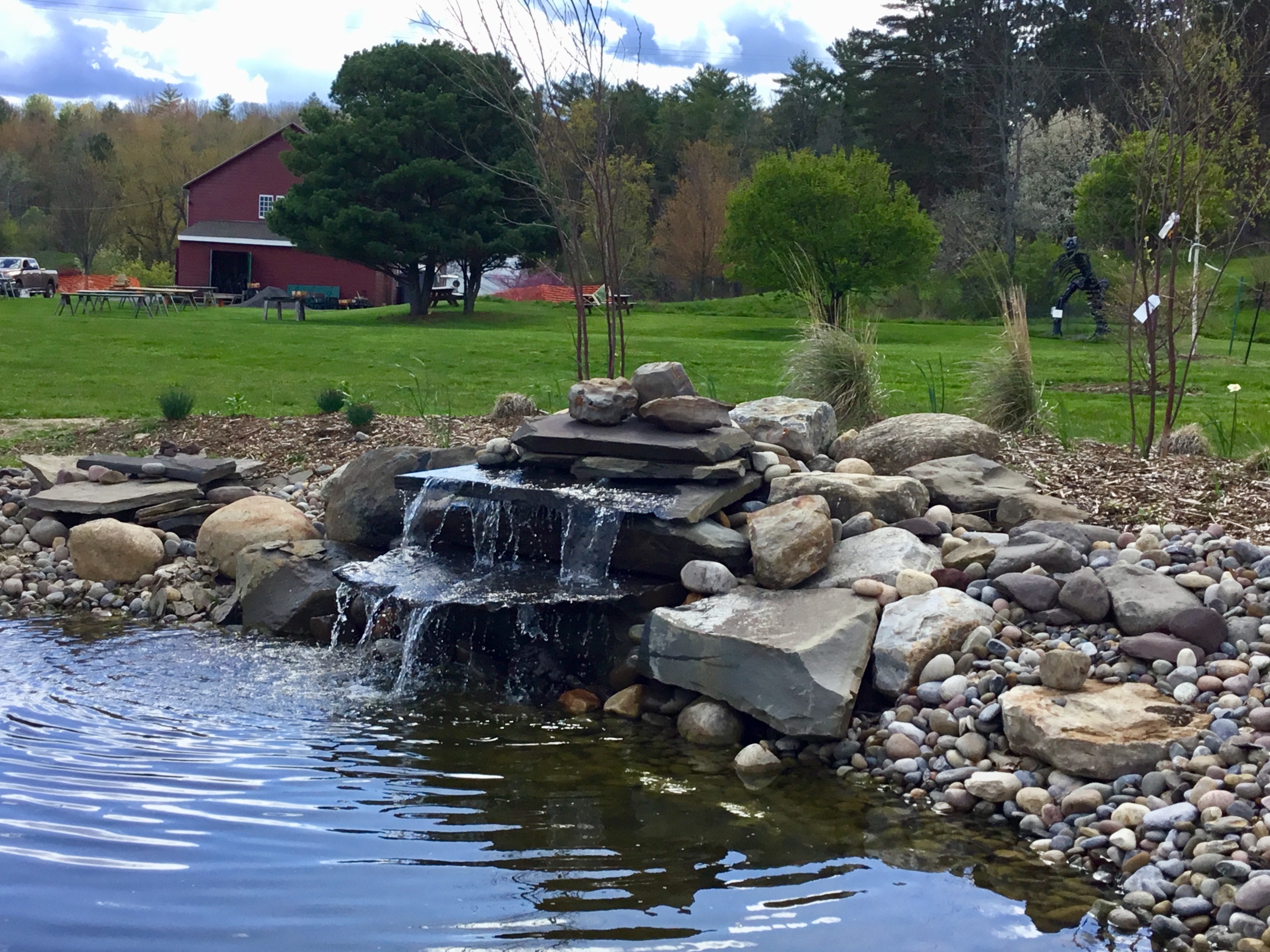 When you come to enjoy this peaceful spot, please refrain from dropping anything into the pond; do not feed the fish (it isn’t healthy for them) or toss pebbles into the water. For your own safety and for the structural integrity of the pond, do not climb on the rocks surrounding the pond or the waterfall.