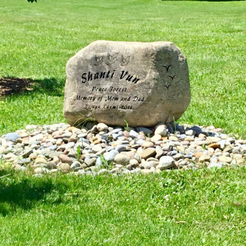 The Shanti Vun Meditation Garden (or Peace Forest) is a lovely, tranquil spot established at Landis Arboretum in 2019. Thanks to support from Landis friend Vijaya Luxmi and the efforts of dedicated volunteers, the Garden took shape during the pandemic years of 2020 and 2021 and continues to be developed.