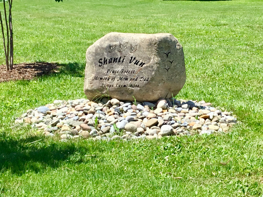 Vijaya Luxmi wanted to create Shanti Vun in memory of her father, Darshan Lal, and mother, Kamla Devi. The various trees honor the memories of her close friends and relatives, all now dancing in the winds of Landis Arboretum and Shanti Vun Meditation Garden.